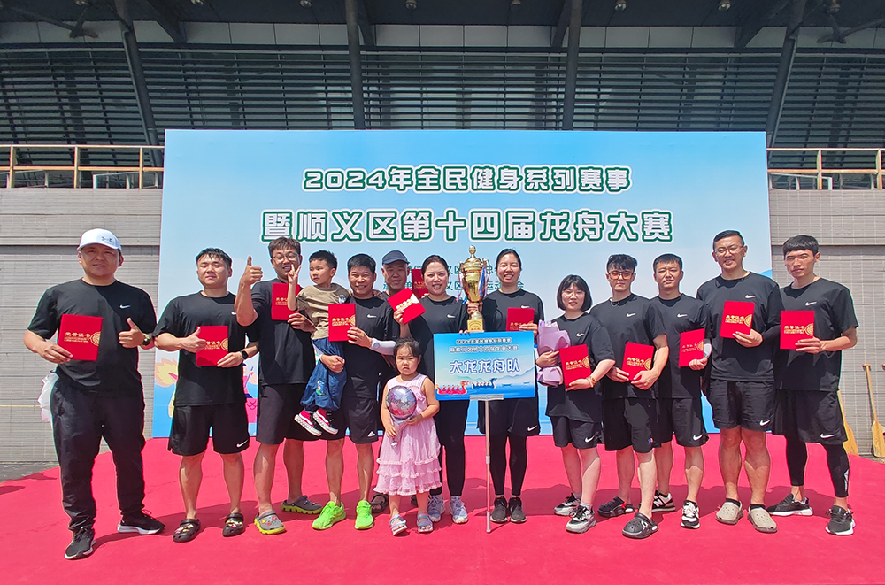近年来,顺义区龙舟赛事渐进升级,成为具有较强影响力和知名度的群众体育赛事。今年,大龙控股积极组织、全力备战,从各所属公司精选12名参赛选手,自6月3日起在奥林匹克水上公园开始龙舟训练,大家顶烈日、冒风雨,学技术、练配合,经过几日高强度集训,最终在比赛当天,凭借娴熟的技巧、默契的配合、拼搏的精神从全区16只队伍中脱颖而出,再次为公司赢得了荣誉。